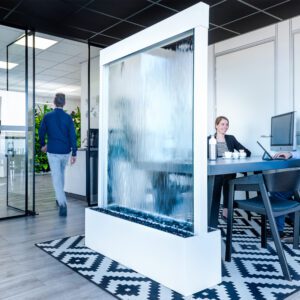 Ein echter Blickfang. Eine transparente und lichtdurchlässige Wasserwand, die die Luftfeuchtigkeit im Raum erhöht. Gestalten Sie die Wasserwand mit Ihrem eigenen Logo oder Text und schaffen Sie ein Unikat.