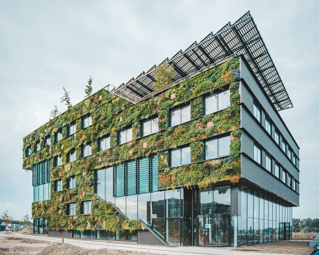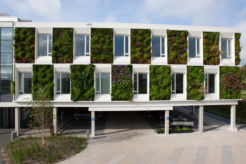 Grüne Fassaden aus nachhaltigen Materialien.